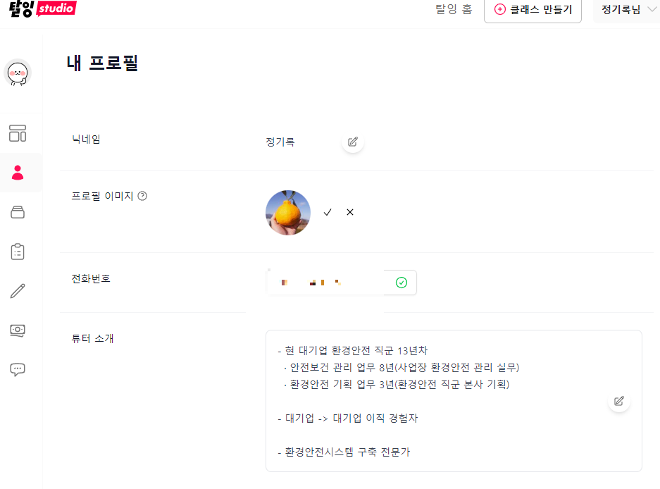 적당히 프로필 이미지를 넣고, 튜터 소개를 간략하게 적었다.