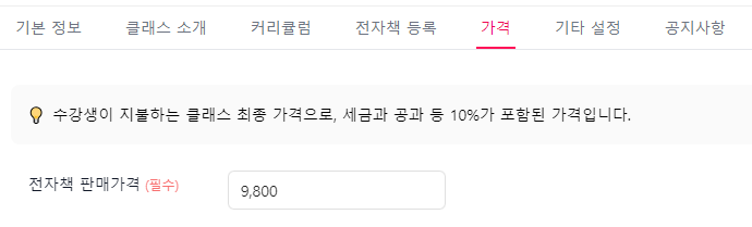 전자책 관련 카테고리, 클래스명(전자책 이름)을 적고, 클래스 썸네일을 넣는다.