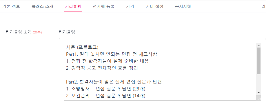 2. 전자책 기본정보, 클래스 소개, 커리큘럼을 쓰고 전자책을 등록한다.